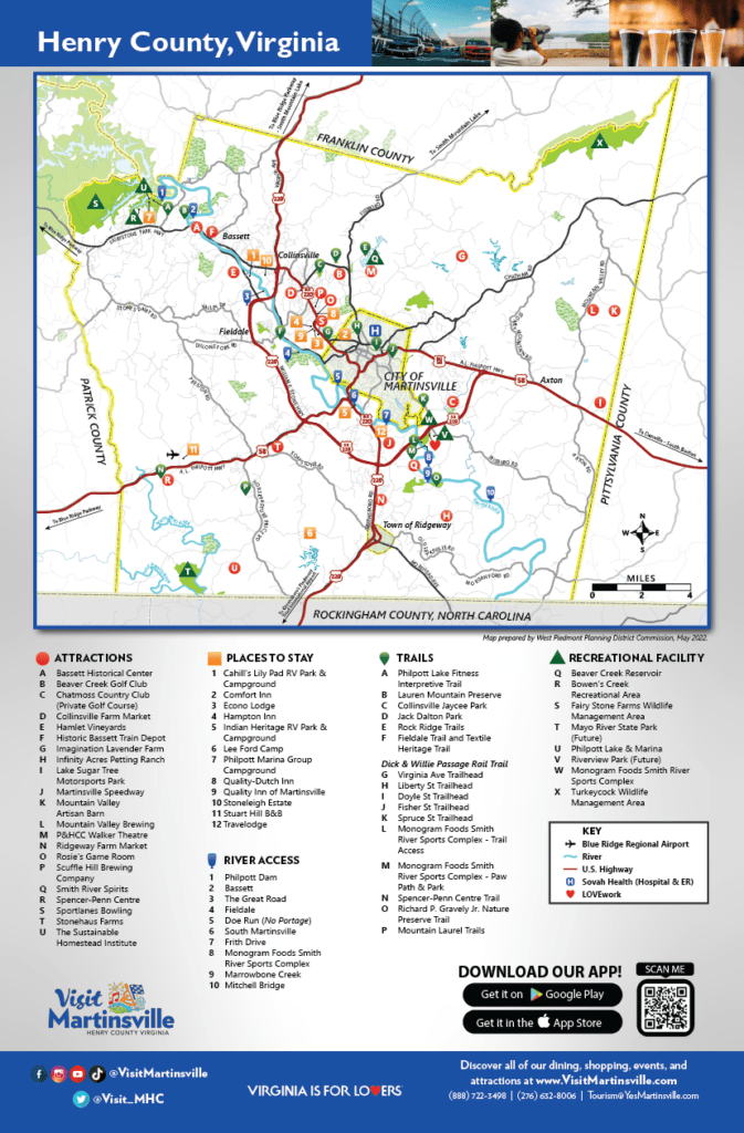 If you’re planning a day trip, weekend escape, family vacation or group event, Martinsville – Henry County has what you are looking for. We are conveniently located at the junction of Highways 220 and 58 in Southern Virginia and within a one day drive of 60% of the US population. We’re home to Martinsville Speedway, Philpott Lake & Marina, the Virginia Museum of Natural History, the Monogram Foods Smith River Sports Complex, and so much more!