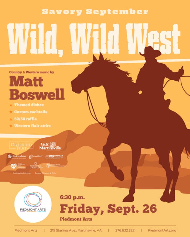 Get ready to boot scootin’ boogie at this Wild West-themed fundraiser for Piedmont Arts.