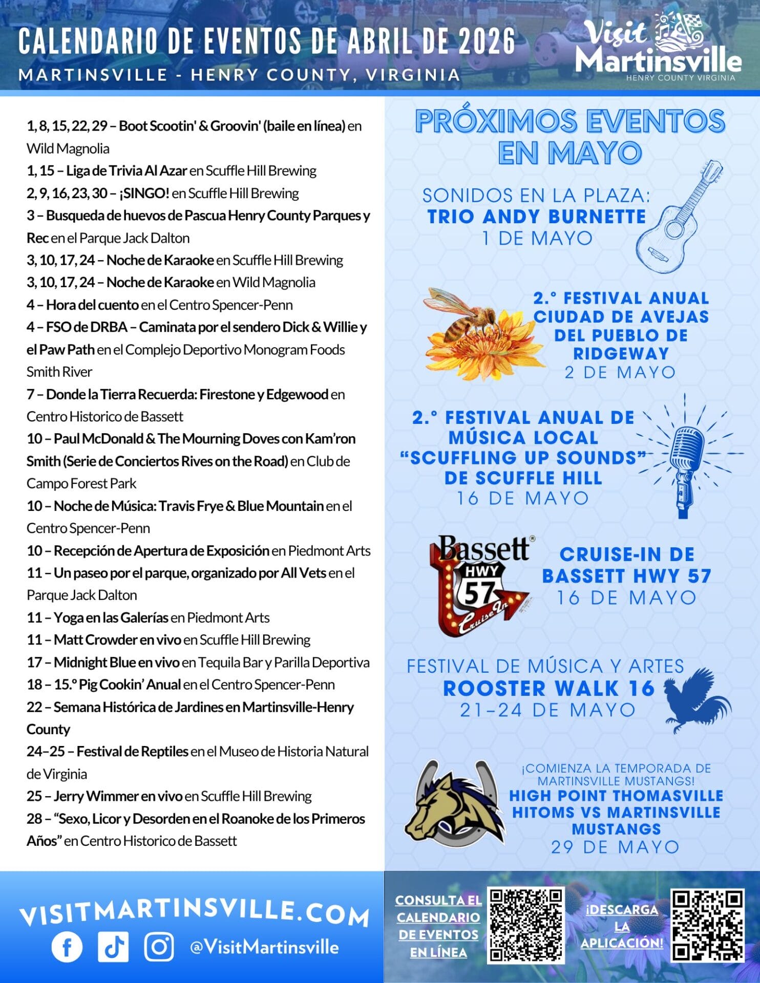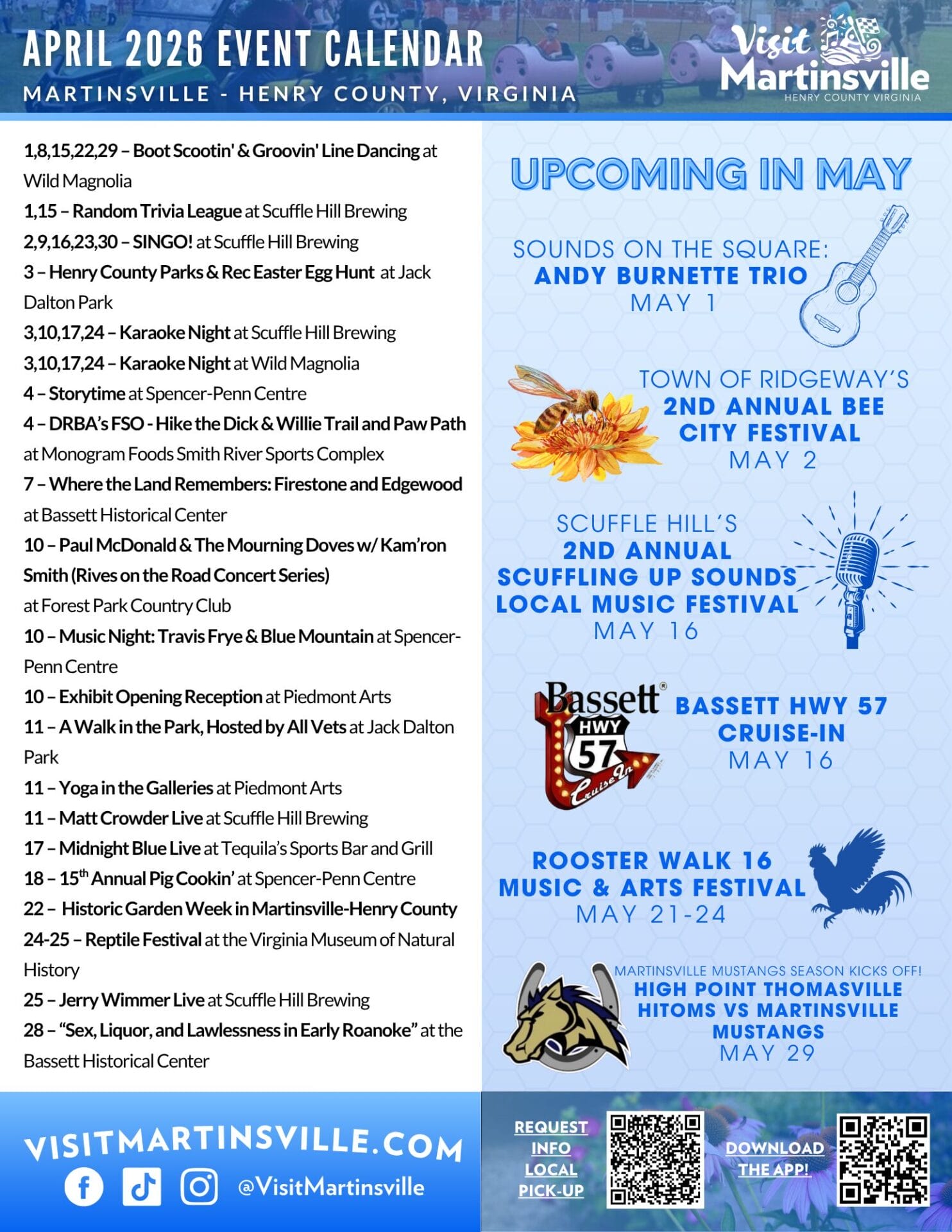 Download a printable monthly calendar from VisitMartinsville!